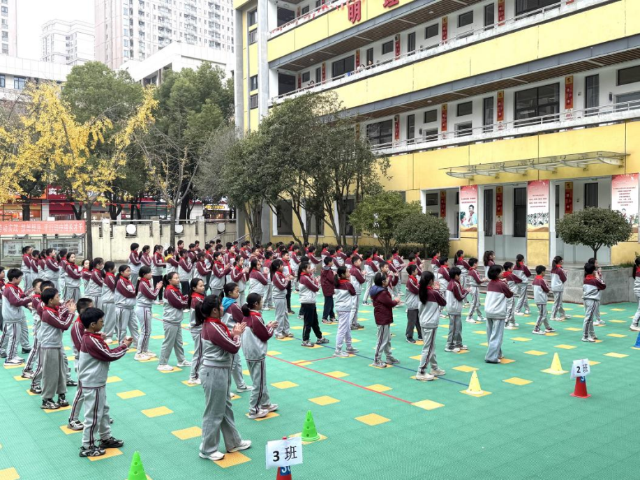 12月5日分年级进行了广播体操比赛、集体跳绳比赛和羊角球接力赛三项集体项目。党员裁判们依据动作规范度、团队配合情况以及精神面貌等评分指标逐项记录,秉持公正、公平、公开的原则完成评分工作。面对学生在赛道上偶尔失衡、摔倒的状况,党员们会及时上前给予鼓励与提醒,引导孩子们稳住节奏、继续向前,在确保赛事规则严格落实的同时,也守护着比赛的温度与童心。