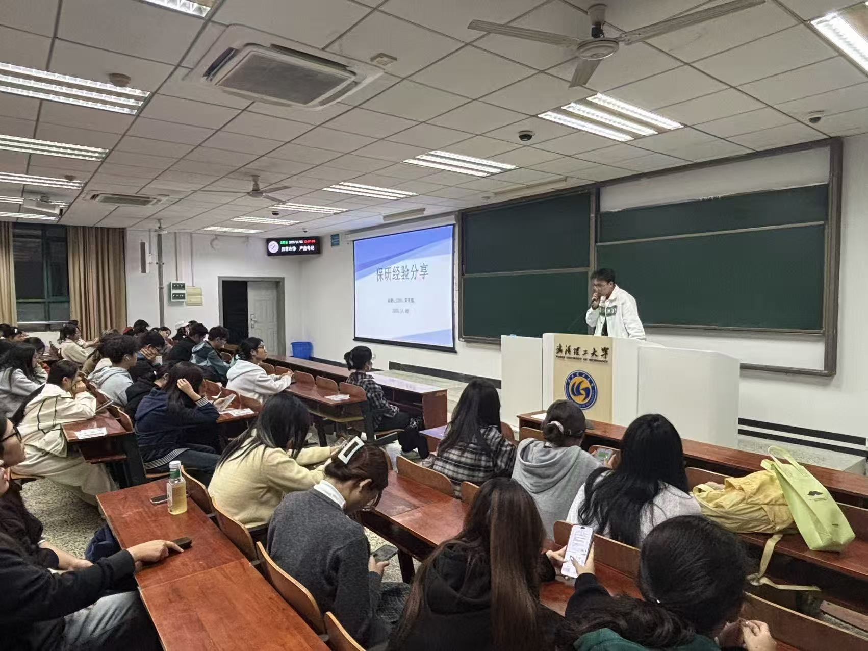 当晚七点,讲座准时开始。辅导员首先对宋帅航同学的基本情况和优异成绩做了简要介绍,并对他的到来表示热烈欢迎。在同学们期待的目光中,分享环节正式拉开帷幕。