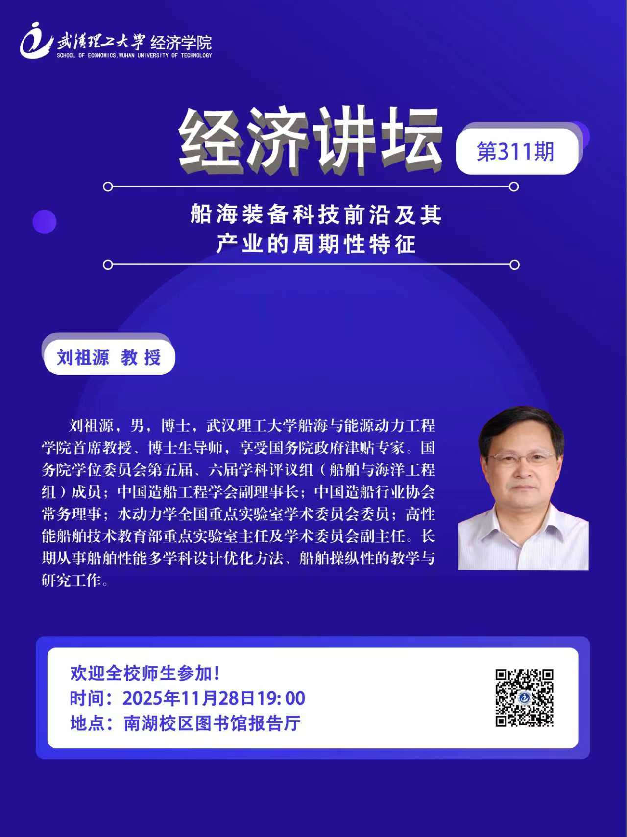 【经济讲坛】第311期 刘祖源教授:船海装备科技前沿及其产业的周期性特征