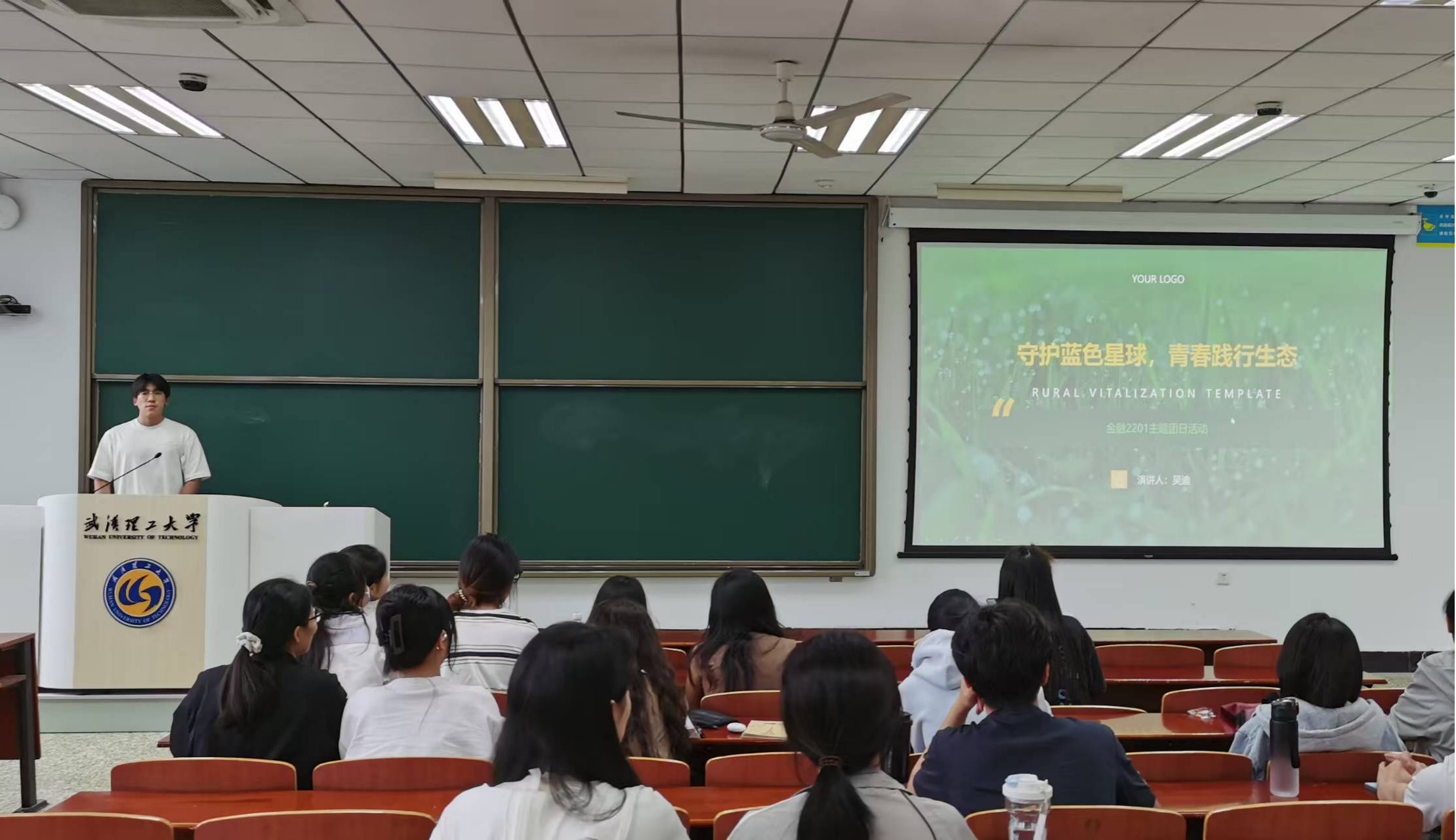 活动伊始,团支书吴迪向同学们详细讲解了生态文明理念的重要性和紧迫性。团支书指出,习近平总书记多次强调“绿水青山就是金山银山”,这一理念不仅是中国生态文明建设的核心,也是我们每名同学都应践行的行动指南。通过生动的案例和详实的数据,团支书向同学们展示了当前全球生态环境面临的挑战,以及中国在应对气候变化和保护生物多样性方面所做出的努力。