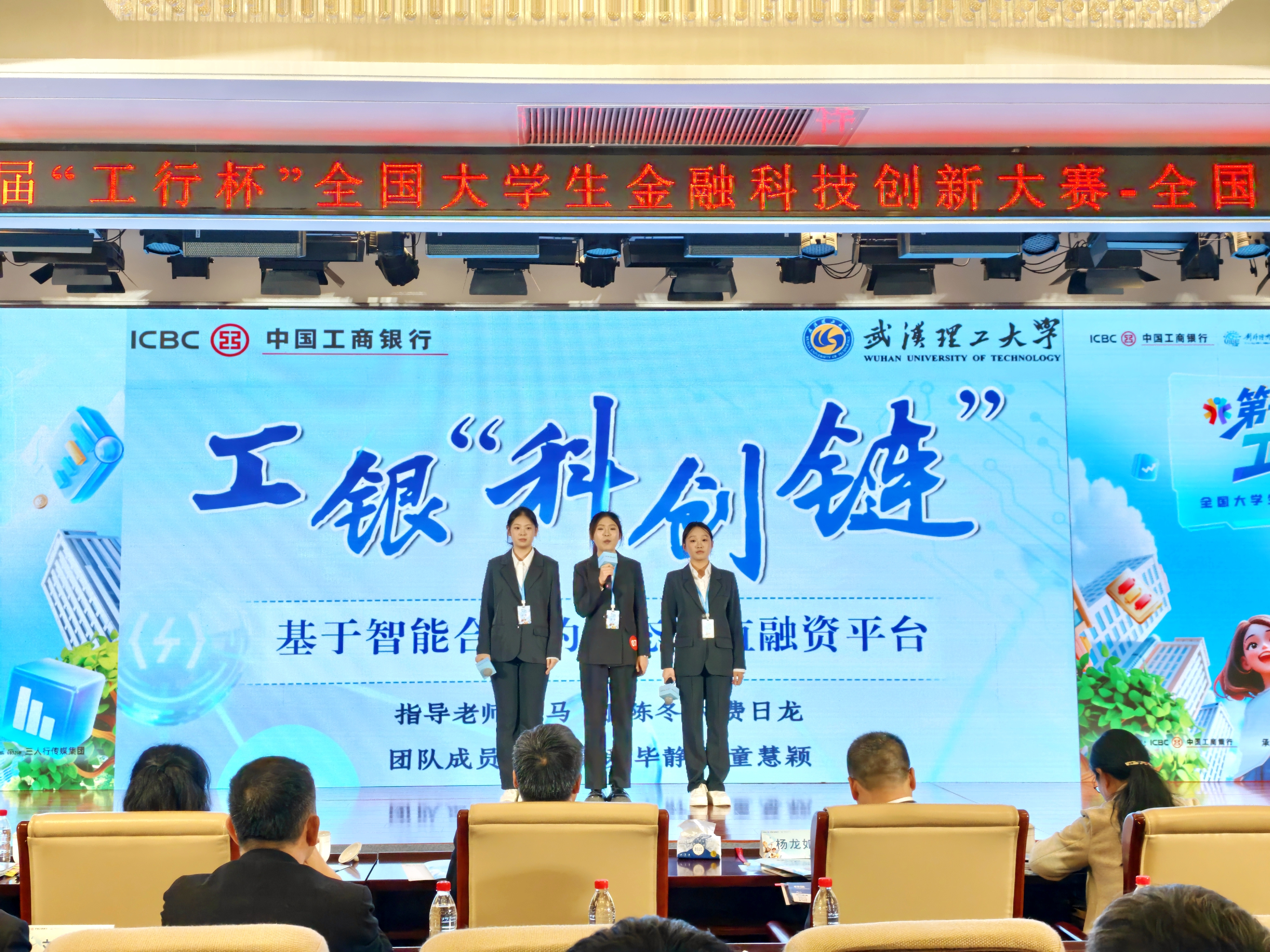 今年的获奖作品《工银“科创链”—基于智能合约的动态价值融资平台》,由马玎教授、陈冬林教授联合指导。该项目聚焦科创企业融资难与银行评估难的行业痛点,秉持“依工强文”的创新思路,构建了以价值评估引擎和合约执行引擎为核心的一站式金融解决方案,覆盖价值发现、合约执行、利率调整全流程。其核心优势体现在三方面:动态价值发现立足创新链整体价值,通过多源数据与智能算法将企业创新潜力转化为可量化信用资产;场景化智能合约将金融契约嵌入真实业务场景,依托数字人民币实现资金定向支付与闭环管理;动态利率调整则将利率与企业创新能力、履约记录等指标实时挂钩,形成“越创新越优惠”的正向激励。完成了从看固定资产到靠创新链价值、从单体数据到协同数据、从通用信贷到场景契约、从固定利率到动态调整的转变,真正以科技赋能金融,破解银企融资对接痛点。