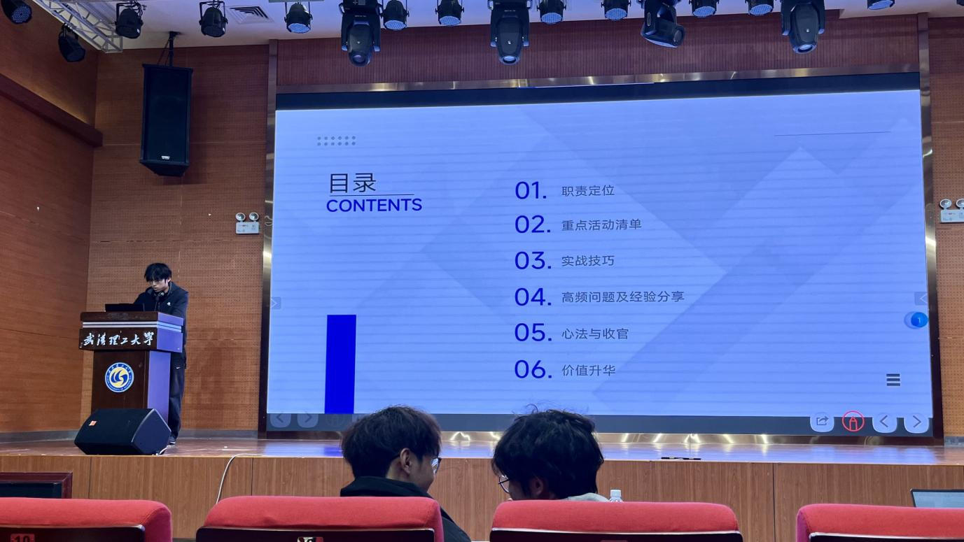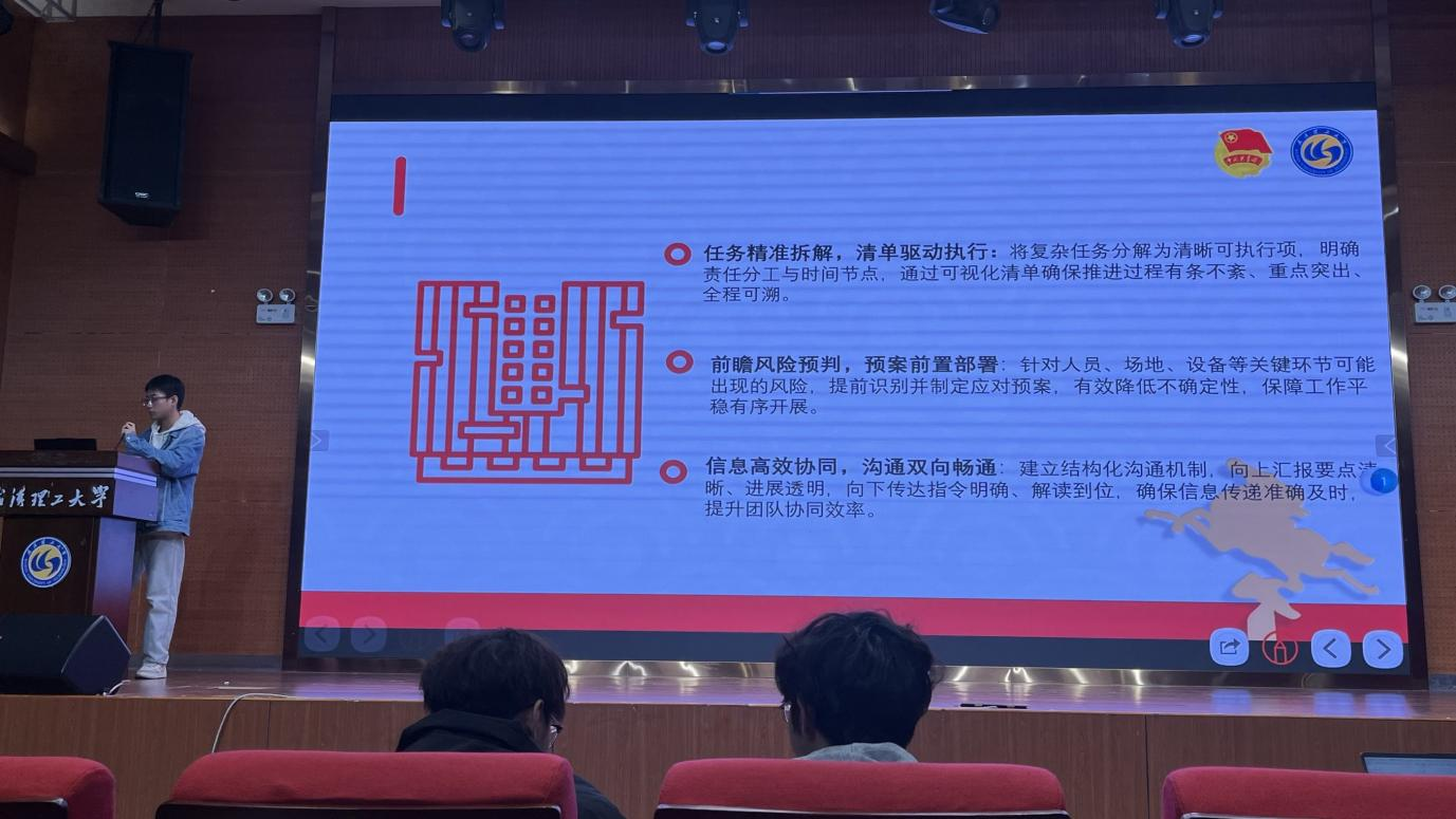 计算机学院班级文体委员蔡雨树围绕职责定位、活动清单、实战技巧等六大模块分享,针对活动通知等高频问题给出解决方案,并提炼出文体委员的核心价值——以每一次付出凝聚班级力量,将个人参与转化为集体荣誉,赋能班级长期发展。