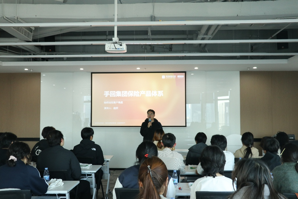 校友领航,传递初心与担当。活动中,手回集团四位核心成员倾囊相授,用经验与智慧为学子搭建起从校园到产业的桥梁。集团负责人、武汉理工大学校友赵丽深情回顾了企业从初创到上市的艰辛与坚守,阐释了“用户第一”的核心价值观。她特别解读“手回”二字取自“妙手回春”的深意,让学子们深刻感受到科技企业“以金融保障守护民生”的责任初心,更读懂了校友创业者“敢闯敢试、追求卓越”的深圳精神。联合创始人赵欢则凭借临床医学与保险的复合背景,以甲状腺结节人群核保优化为例,生动讲解了科技如何打破传统保险壁垒,让普惠性保障触达更多人群,直观展现了“理工技术+人文关怀”的融合力量,让经济学专业学子对学科应用有了全新认知。