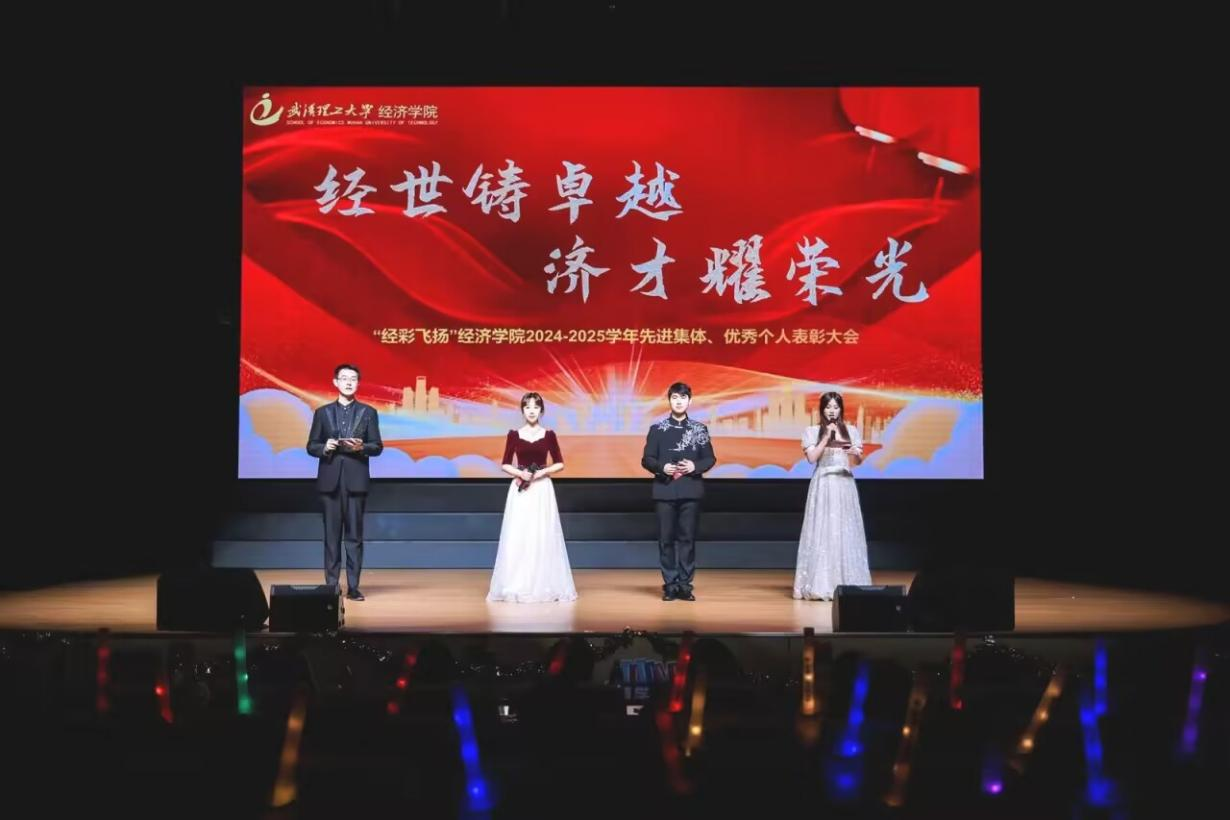为表彰先进、树立标杆,充分发挥优秀学子的示范引领作用,激励全院学子奋发向上、追求卓越,3月20日,武汉理工大学经济学院在西院大礼堂隆重举行“经彩飞扬”表彰大会。学院领导、专业教师、全体辅导员及各年级学生代表齐聚一堂,共同见证荣耀时刻,汲取奋进力量。