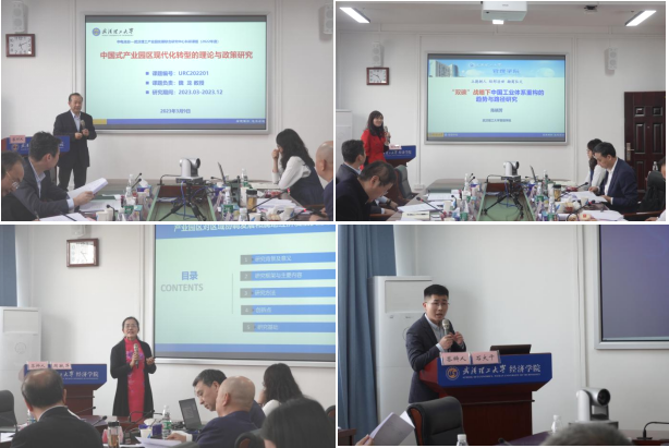 3月9日下午,中电光谷—武汉理工产业园发展联合研究中心在经济学院鉴湖510会议室召开了项目课题答辩会。中电光谷联合控股有限公司黄立平总裁、陈同举副总裁、尹碧涛副总裁,湖北省社会科学院原副院长杨述明教授、武汉大学战略管理研究院副院长杨艳琳教授、中电光谷产业生态研究院袁虎成副院长、武汉理工大学经济学院院长魏龙教授、党委副书记乔云莉副教授出席会议,中电光谷企业代表以及答辩项目课题组全体成员列席会议。中心联席主任魏龙院长主持本次答辩评审会。