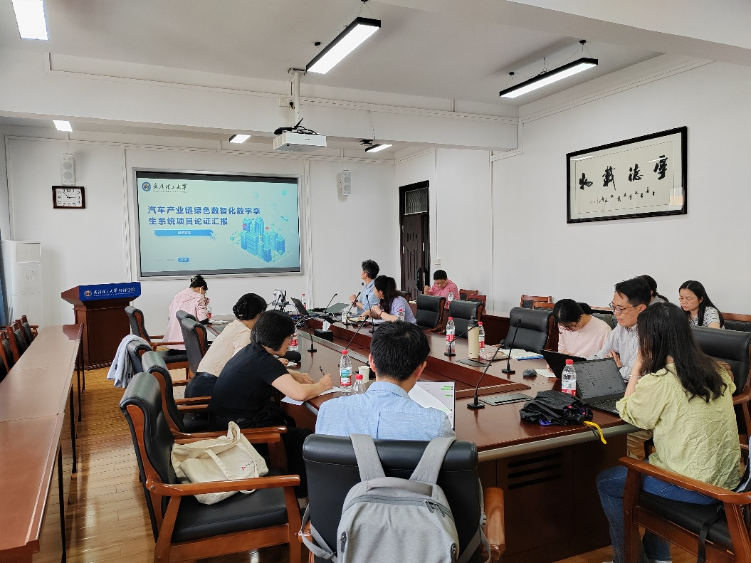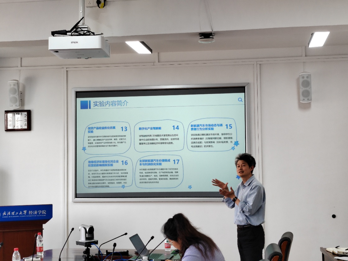 其次,杨爱民老师作 “汽车产业链绿色数智化数字孪生系统项目论证” 汇报,探索产教融合与学科交叉育人路径。杨老师提出,跨学科融合有助于提升人文社科解决产业问题的能力。