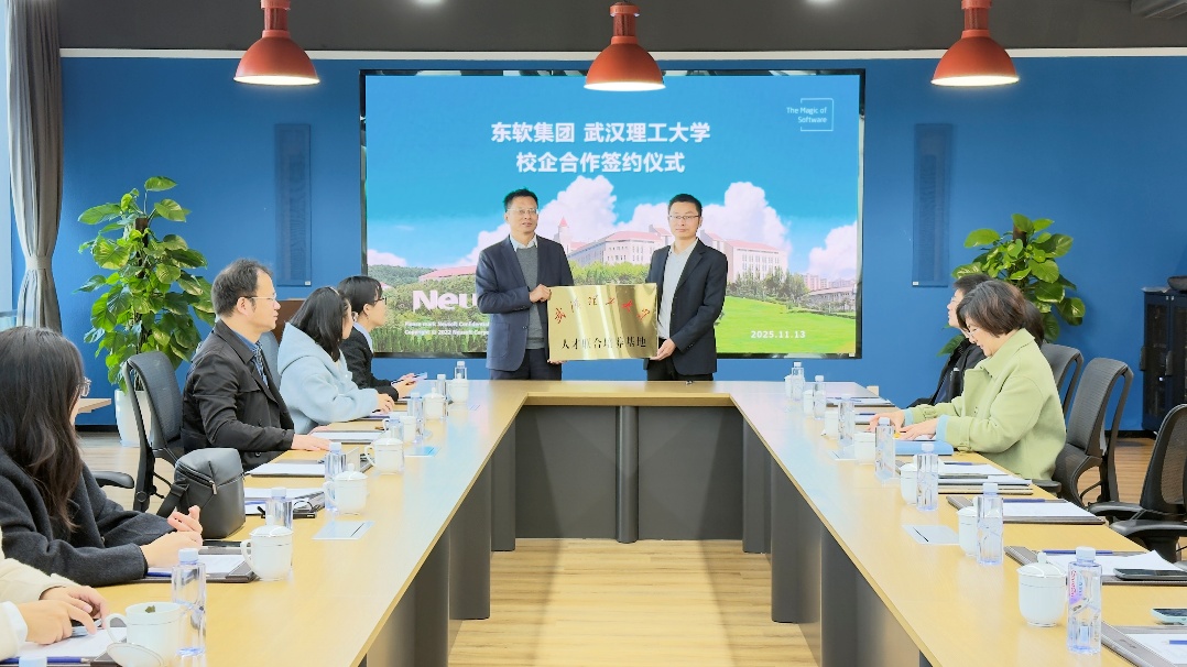 2025年11月13日,武汉理工大学经济学院人工智能与数字经济系师生代表团赴东软集团(武汉)开展校企交流,并隆重举行合作签约仪式。代表团由院长陈冬林、系主任危小超及副主任杨爱民率队,旨在深化产教融合,拓展协同育人路径。
