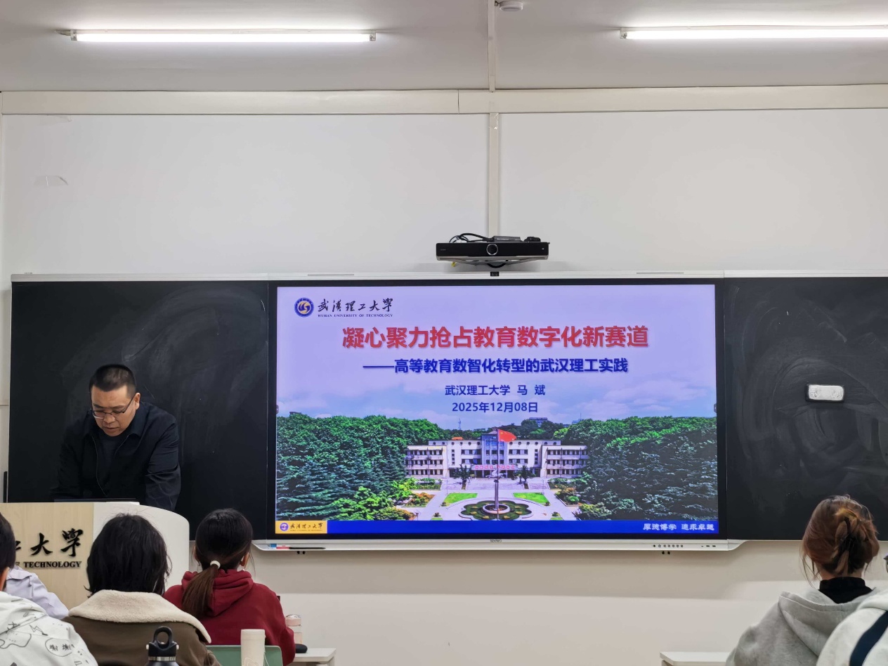 12月8日,学校信息化办公室主任马斌为数字经济专业硕士生做报告,主讲题为《凝心聚力抢占教育数字化新赛道——高等教育数智化转型的武汉理工实践》的专题讲座,系统介绍了人工智能赋能高等教育的典型实践案例。