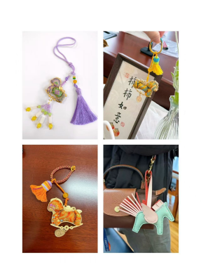 本次活动选取非遗宋锦小马挂件、皮具新年包挂两大手作项目,兼具文化底蕴与实用性。活动现场,专业指导老师细致讲解宋锦织造特点、制作要点及皮具制作技巧,帮助老师们快速掌握创作要领。体验中,老师们化身“巧手匠人”,或专注裁剪、或细致缝合,相互交流创作心得,现场暖意融融、氛围融洽。