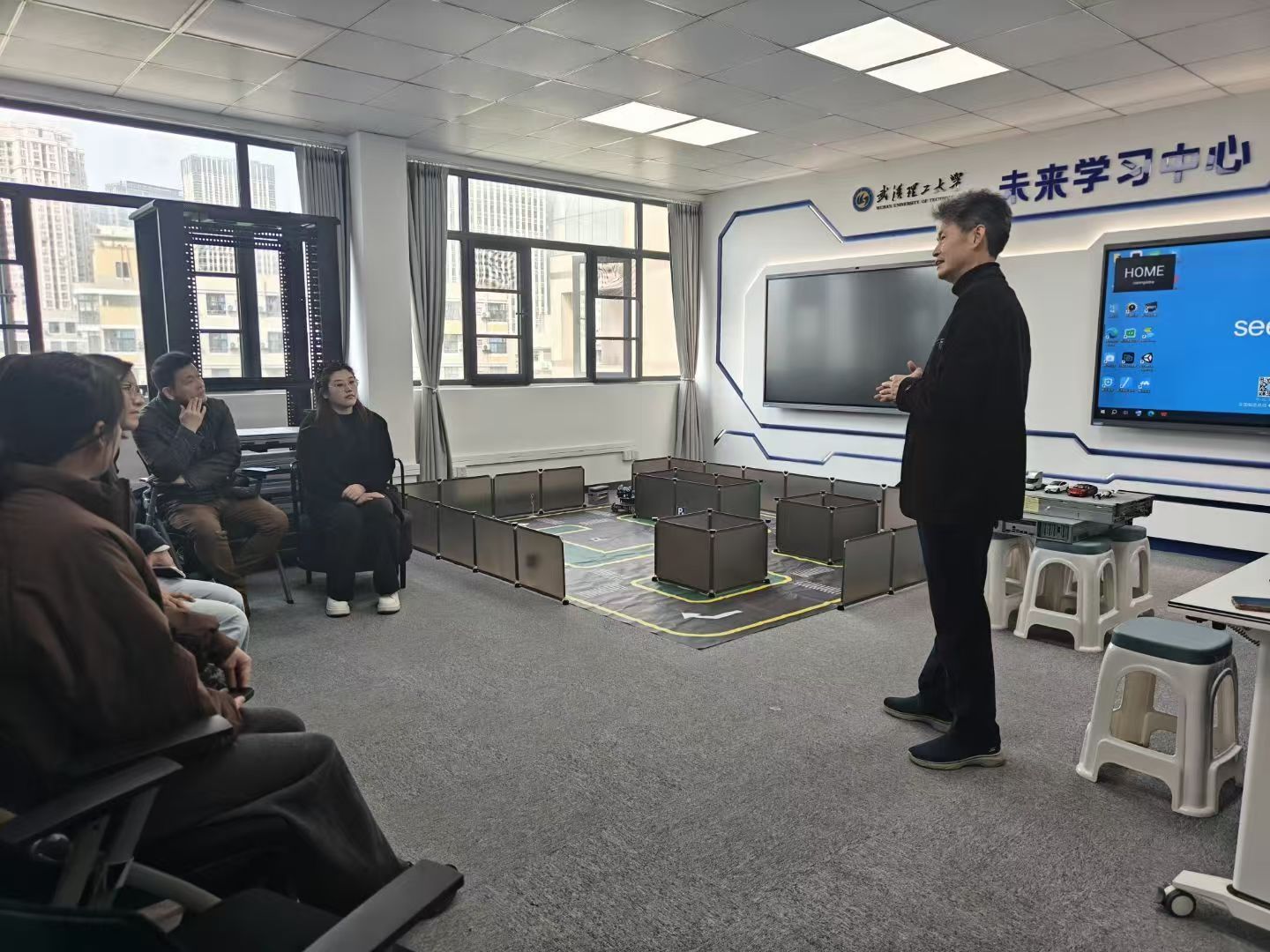经济学院陈冬林院长向到访嘉宾详细介绍了中心的战略定位与建设成果。作为服务于智能交通领域的数智化人才培养与创新实践平台,中心秉持"以人为本·产教融合·科教融汇"的"理工范式"建设理念,致力于打造武汉理工大学数智化教育新标杆,实现校内可复制、行业可推广的预期目标。