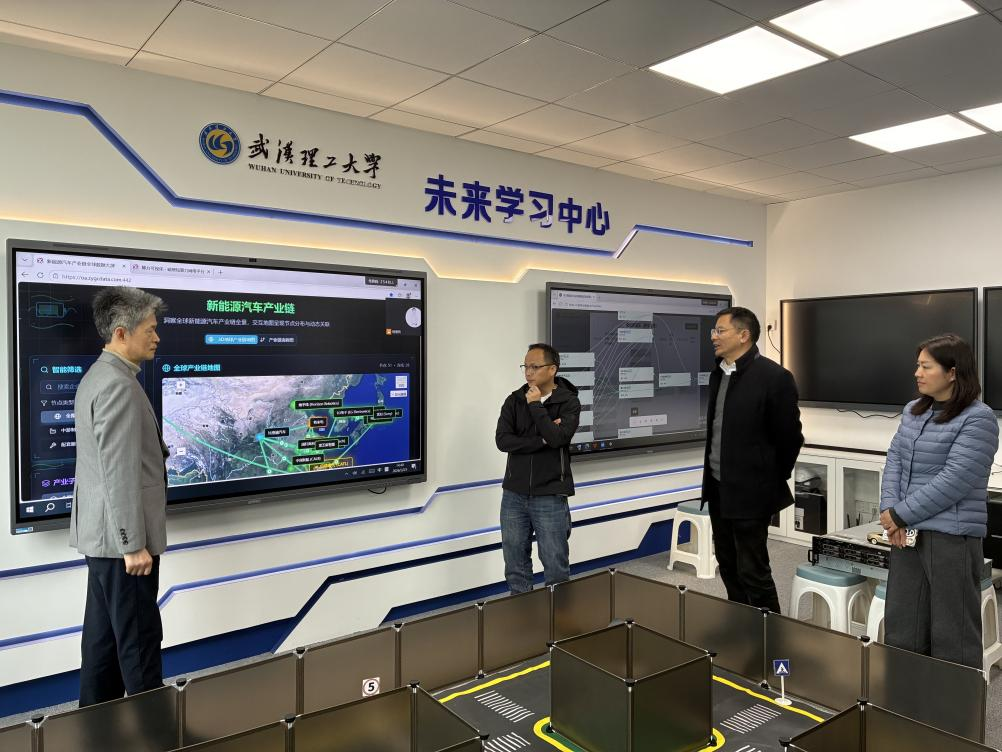 陈院长带领汉得一行参观了学院未来学习中心,现场演示了AI算法在电力资源调度最优解、无人驾驶汽车自动寻找最优充电桩等方面场景化教学成果。汉得团队分享了AI在企业各运营领域的管理场景,为教学场景创新提供了产业视角。