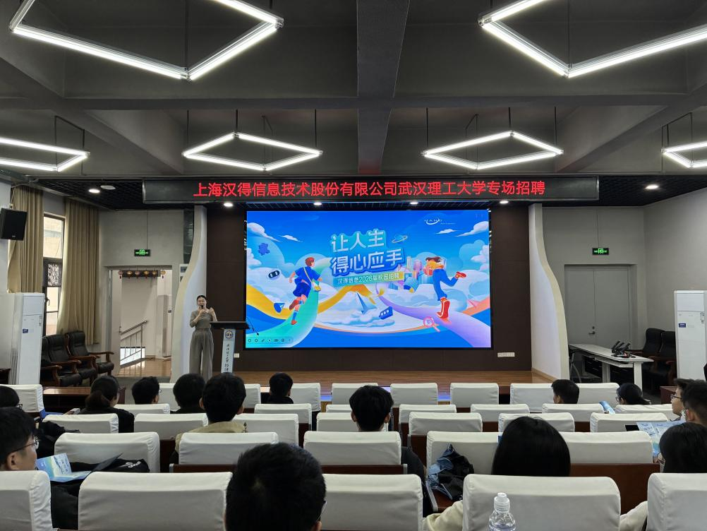 座谈会结束后,汉得信息在学院报告厅举办了专场宣讲招聘会,并现场开展简历筛选与面试,为学院学子搭建了便捷的就业对接平台,现场求职氛围浓厚。